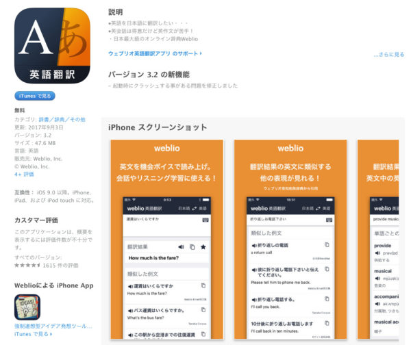 ・ウェブリオの公式「英語翻訳」アプリが解決