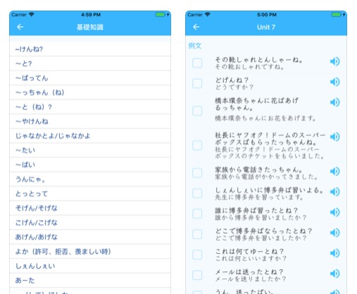 博多弁で遊ぶためのアプリがiTunesにあります。「博多弁方言クイズ!」というアプリで、クイズをしながら楽しく博多弁を覚えられるアプリです。