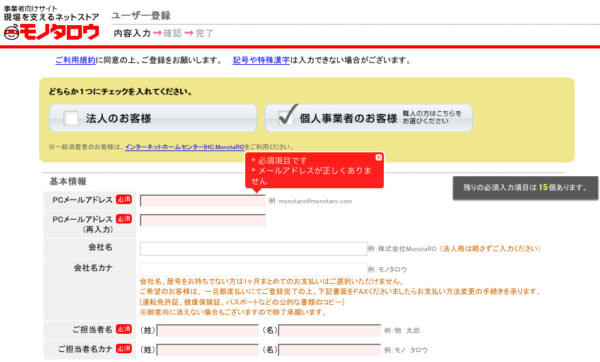 ホームページでは、モノタロウの個人利用は事業者向けと別枠になっています。最初に会員登録をすれば、すぐ利用可能状態になります。事業者でもお手軽さがメリットで、あえて個人利用を選択するケースは少なくないようです。