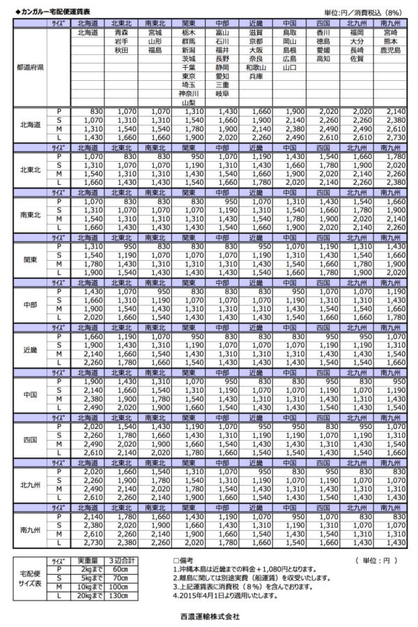 西濃運輸の料金は、ホームページの料金表をみて目安額を出す方法もあります。